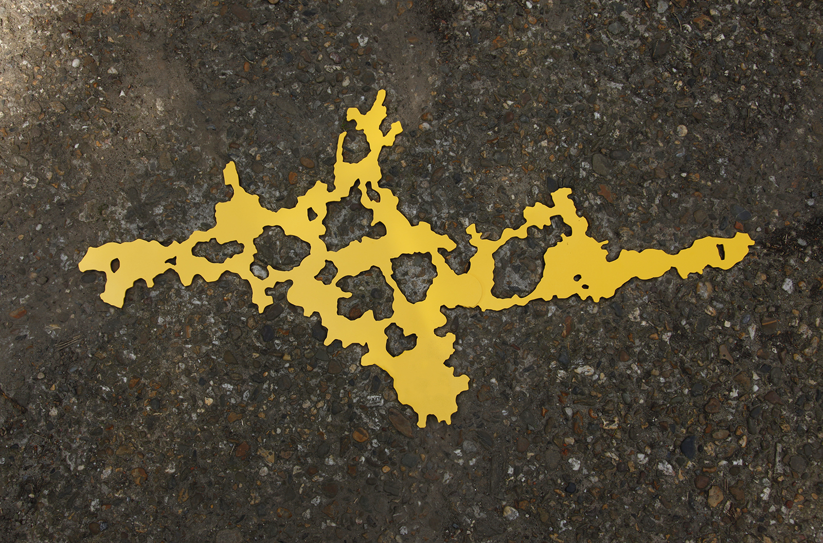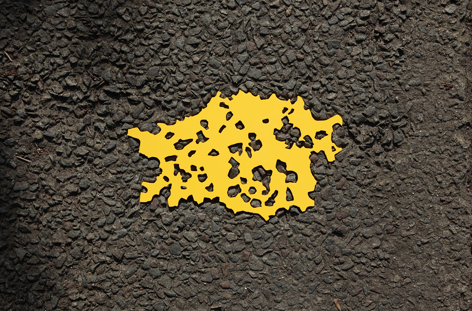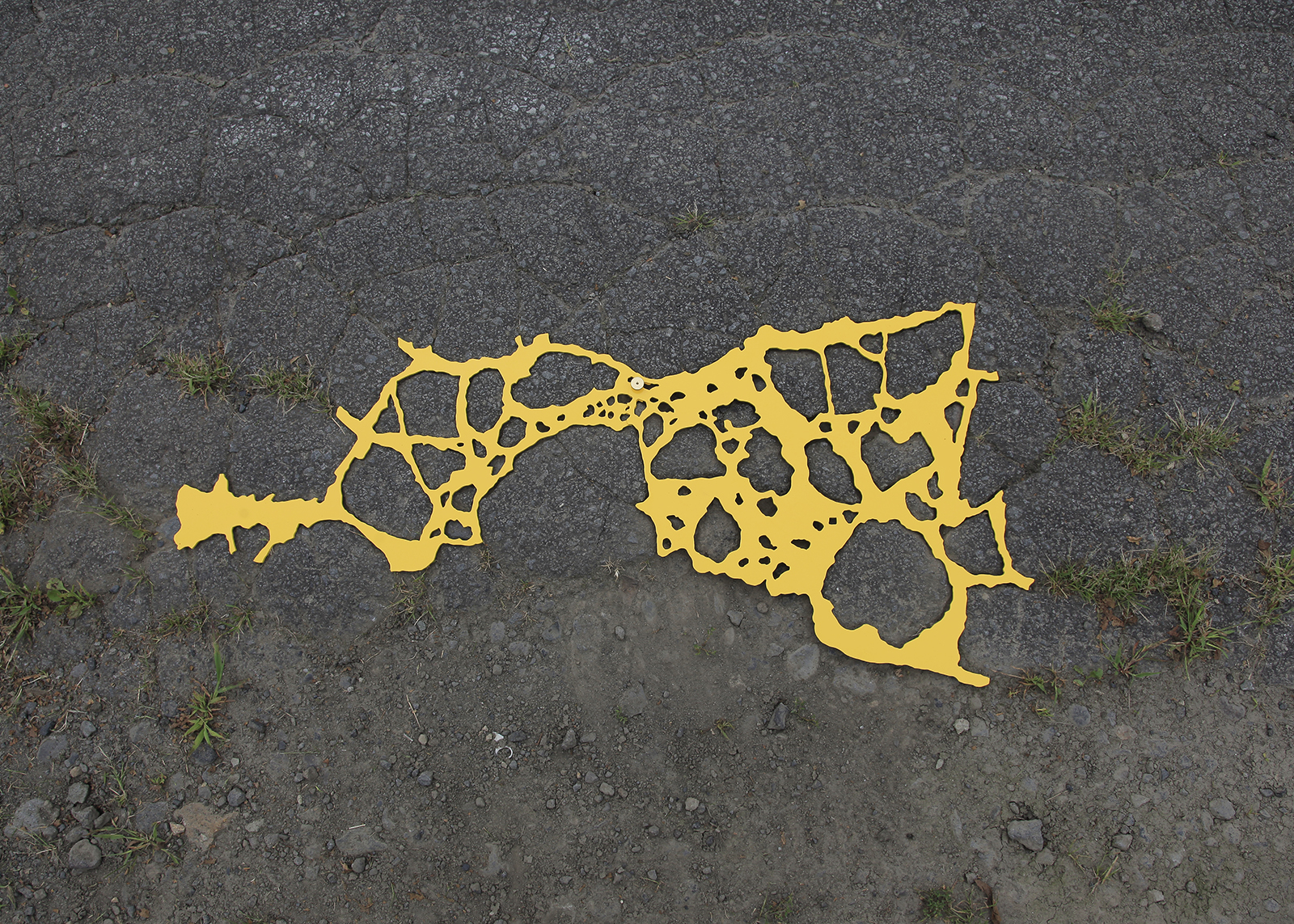 Hecomi are everywhere, on roads, exterior or interior walls, floors, corridors, and ceilings. If I find one amongst them that I like, I will transfer its outline onto transparent film. I can then use PVC to create a positive – a flat object that fits directly into the actual crack. It is a dramatic moment when this unique key tightly fits in the keyhole with a click. By filling in the previously empty space, its shape stands out and sometimes I wonder about the stories of those lost pieces.