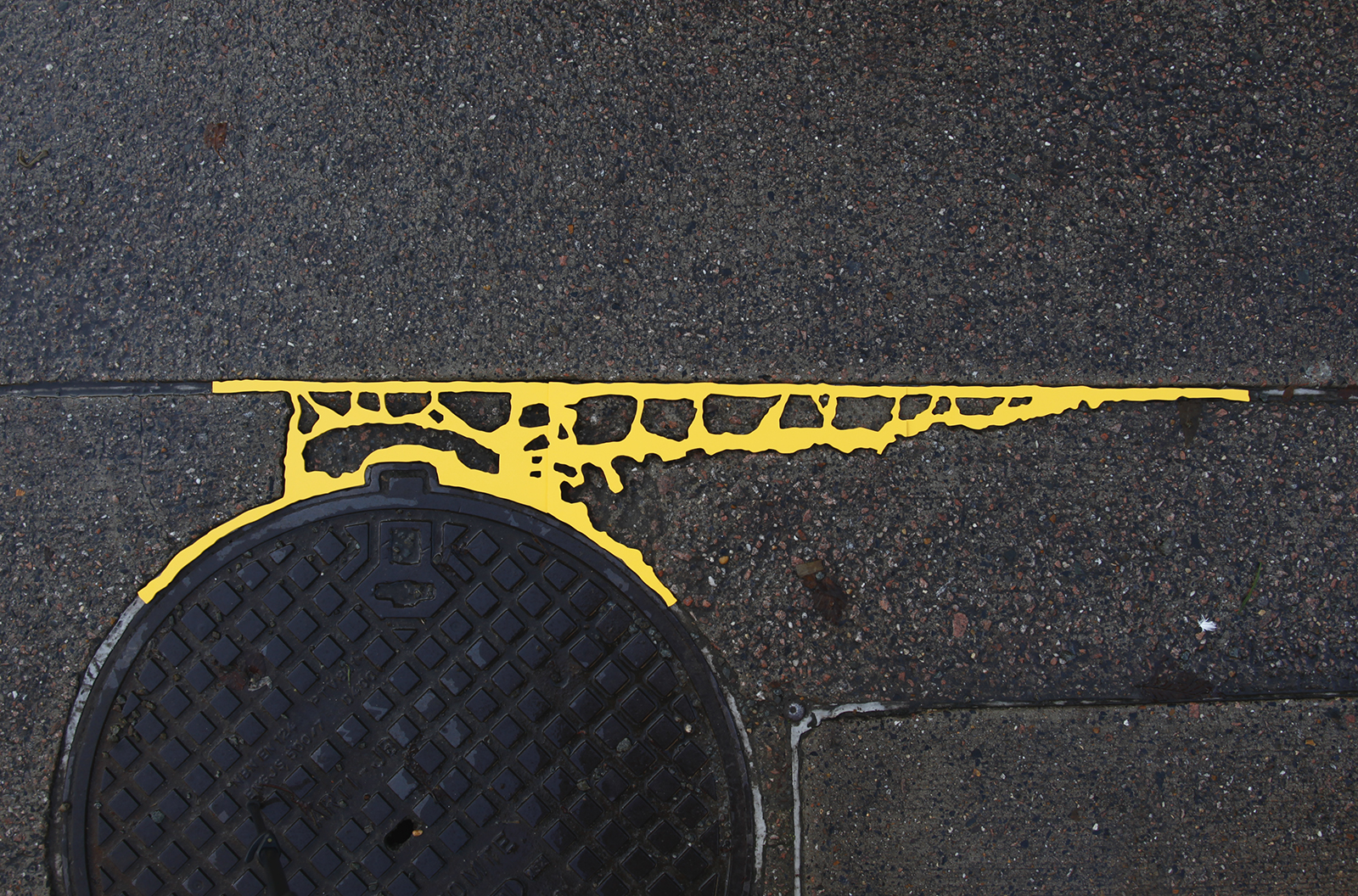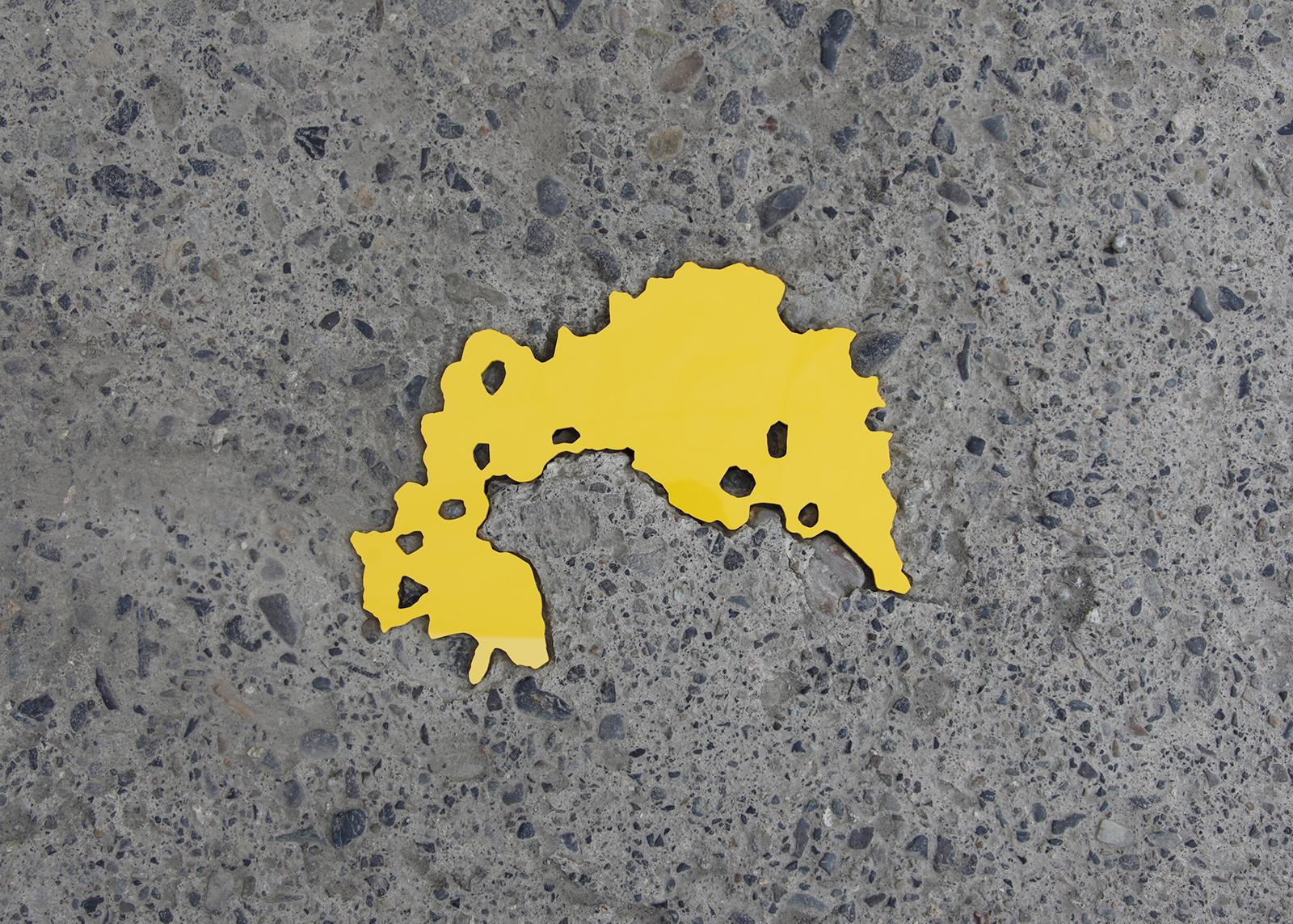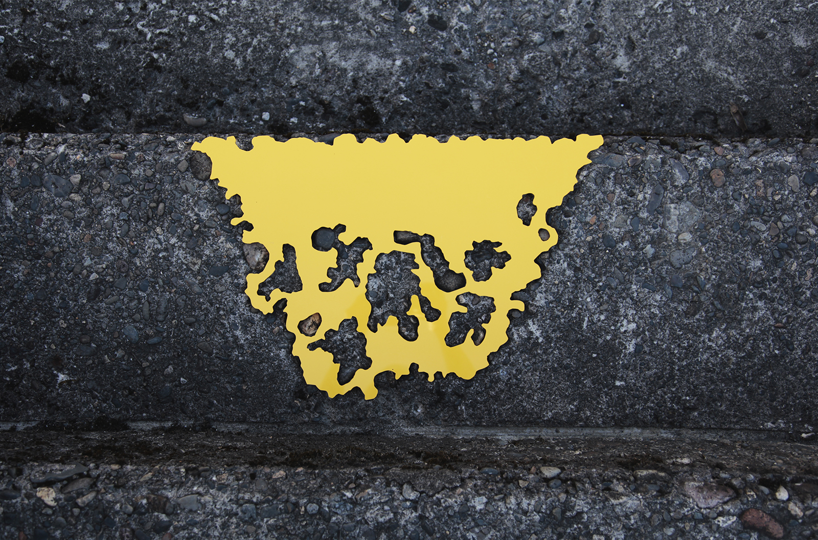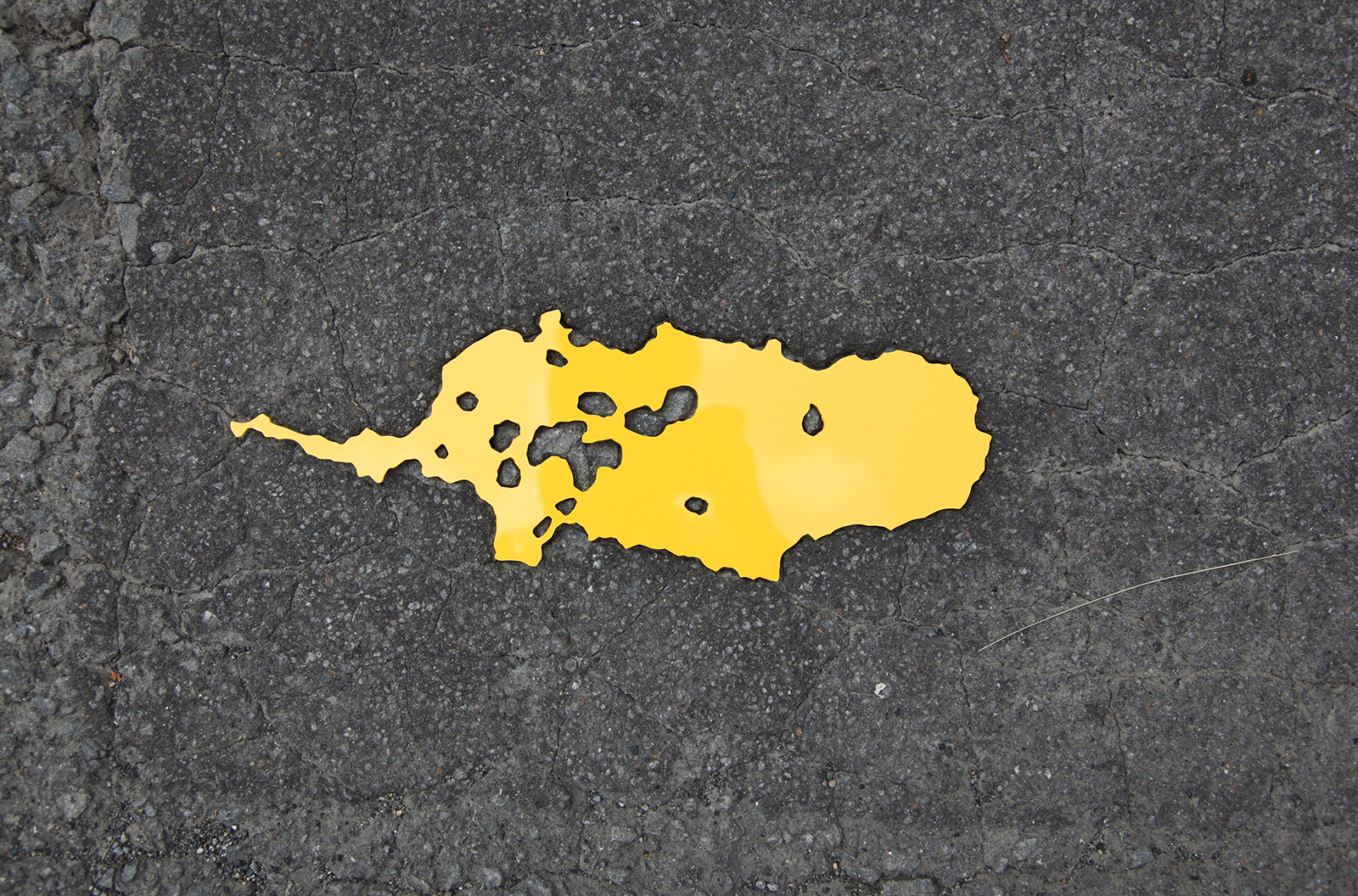 Hecomi are everywhere, on roads, exterior or interior walls, floors, corridors, and ceilings. If I find one amongst them that I like, I will transfer its outline onto transparent film. I can then use PVC to create a positive – a flat object that fits directly into the actual crack. It is a dramatic moment when this unique key tightly fits in the keyhole with a click. By filling in the previously empty space, its shape stands out and sometimes I wonder about the stories of those lost pieces.